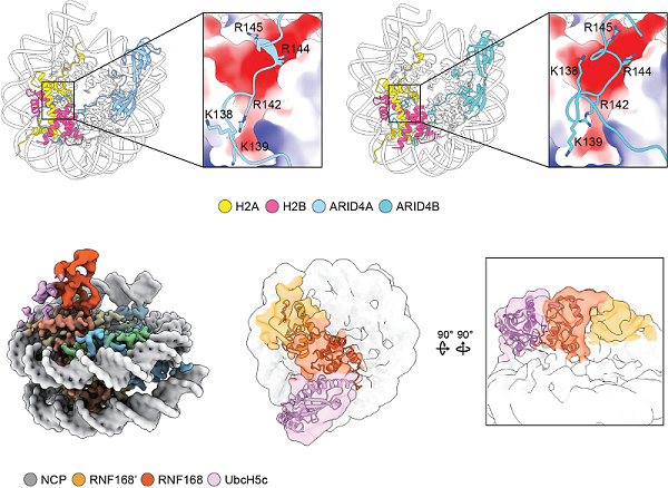 图2 ARID4A/4B识别核小体与RNF168的二聚化增强核小体相互作用