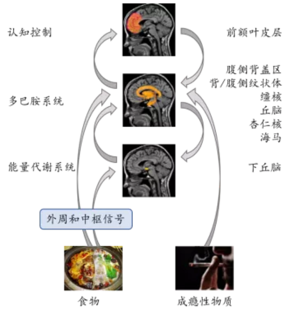 人们偏爱的解压方式,无论是美食还是娱乐活动,都可以刺激大脑多巴胺(Dopamine, DA)大量释放,带来愉悦的感觉,所以可以解压。但是相同的解压方式,时间久了,会不自觉地增加美食摄入量或者娱乐时长。例如,当你在刷各种短视频软件的时候,会不断增加冲浪时长,永远都有下一个新的视频在等着你。为什么我们会停不下来呢?在某种程度上,这可能是因为我们的机体奖赏发生了改变,让机体对于原本的奖赏效应不再满足,从而影响了我们的行为决策。在这样的变化过程中,发挥作用的主要是能量稳态系统和奖赏系统。