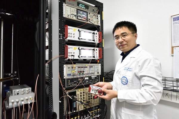 胡一南与其所研制的第一代原子磁力计控制器