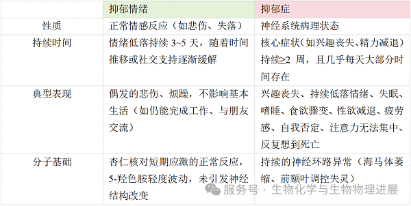 在快节奏的生活中,大家常常会听到"抑郁"这个词。但是,抑郁情绪和抑郁症其实是两个不同的概念。我们可能会混淆两种概念,甚至在不经意间给自己或他人贴上错误的标签。抑郁症相对于抑郁情绪,持续时间更长,一般在两周以上。抑郁症的症状也比较复杂多样,除了情绪低落外,还涉及到认知、行为、生理等多方面的异常。抑郁症患者会出现严重的消极思维、行动迟缓、失眠、食欲减退等抑郁情绪所不具备的症状,患者很难自己摆脱这种情绪困境。所以,抑郁情绪类似于大脑的"短期停电",抑郁症类似于大脑 "电路系统损坏",需要专业的治疗和帮助[1-2]。