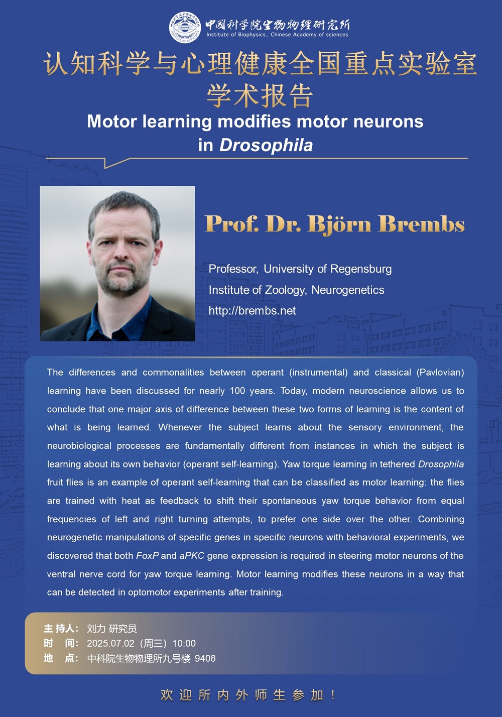 认知科学与心理健康全国重点实验室欢迎具有生物学、数学、物理、计算机科学、心理学、医学、电子学、生物医学工程等专业的学生报考!