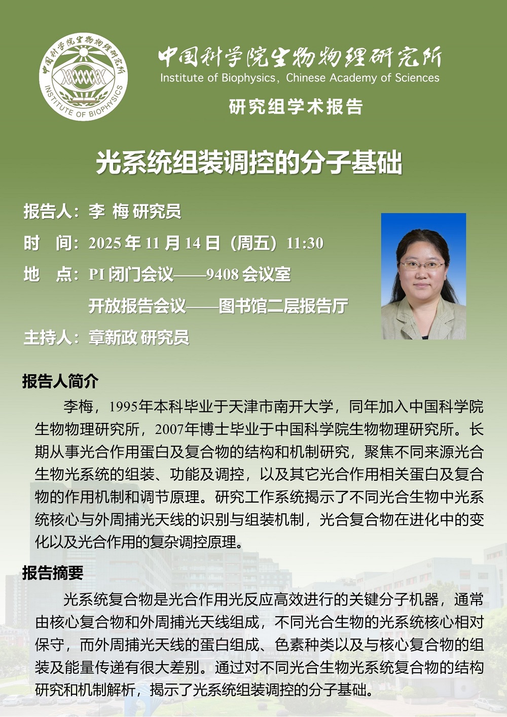 2025年11月14日中午11:30 研究组学术报告:光系统组装调控的分子基础