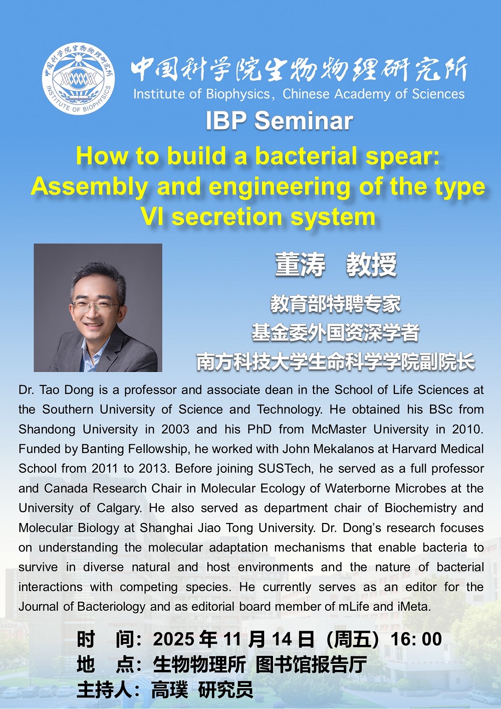 2025年11月14日下午16:00 IBP Seminar:How to build a bacterial spear: Assembly and engineering of the type VI secretion system