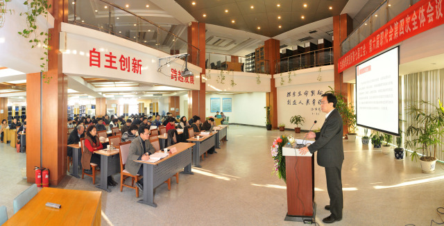2011年12月19日,生物物理研究所召开了第七届工会第六届职代会第四次全体会议,会期一天。来自10个代表组的职工代表和大会特邀的所领导、党委委员、纪委委员、职能部门负责人、支部书记、妇委会、团委、学生会、离退休人员代表80人出席了大会。会议分别由所党委副书记、工会职代会主席汪洪岩和工会职代会副主席阎锡蕴主持。